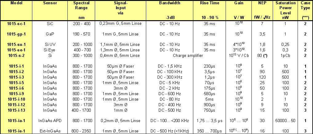 In coordination with customers and their specific applications, we develop and produce highly sensitive sensors (e.g., detector–amplifier combinations) capable of detecting signals down to the small atto-watt range, limited by √Hz bandwidth.